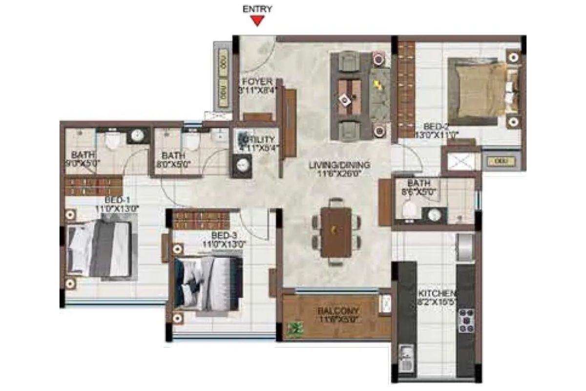 - Beautifully crafted 2 & 3 BHK apartments with modern style.