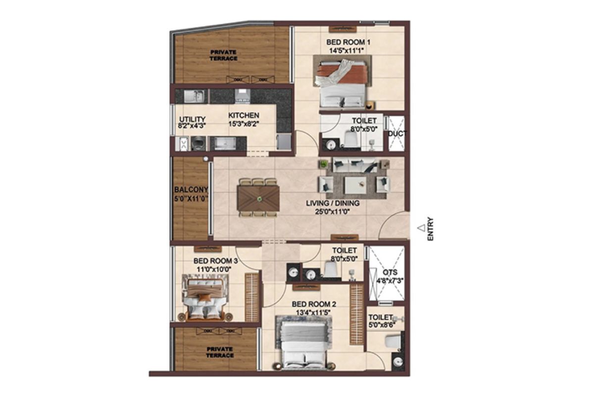 Ideal for home seekers looking for a spacious 3 BHK apartment in Chennai, this project is an ideal blend of space, comfort, and modern look.