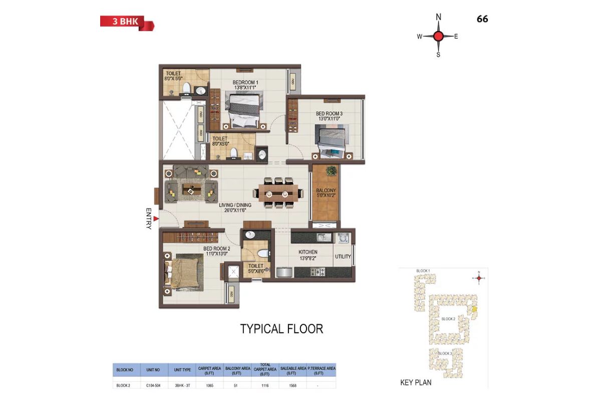 Priced for working professionals and families, the project offers more than ample interiors. Stuffed with smart layouts, proper ventilation, and modern finishes, each apartment provides a comfortable and sophisticated living space. Whether a 2, 3, or 4 BHK, the layout ensures maximum utilization of space without compromising on privacy.