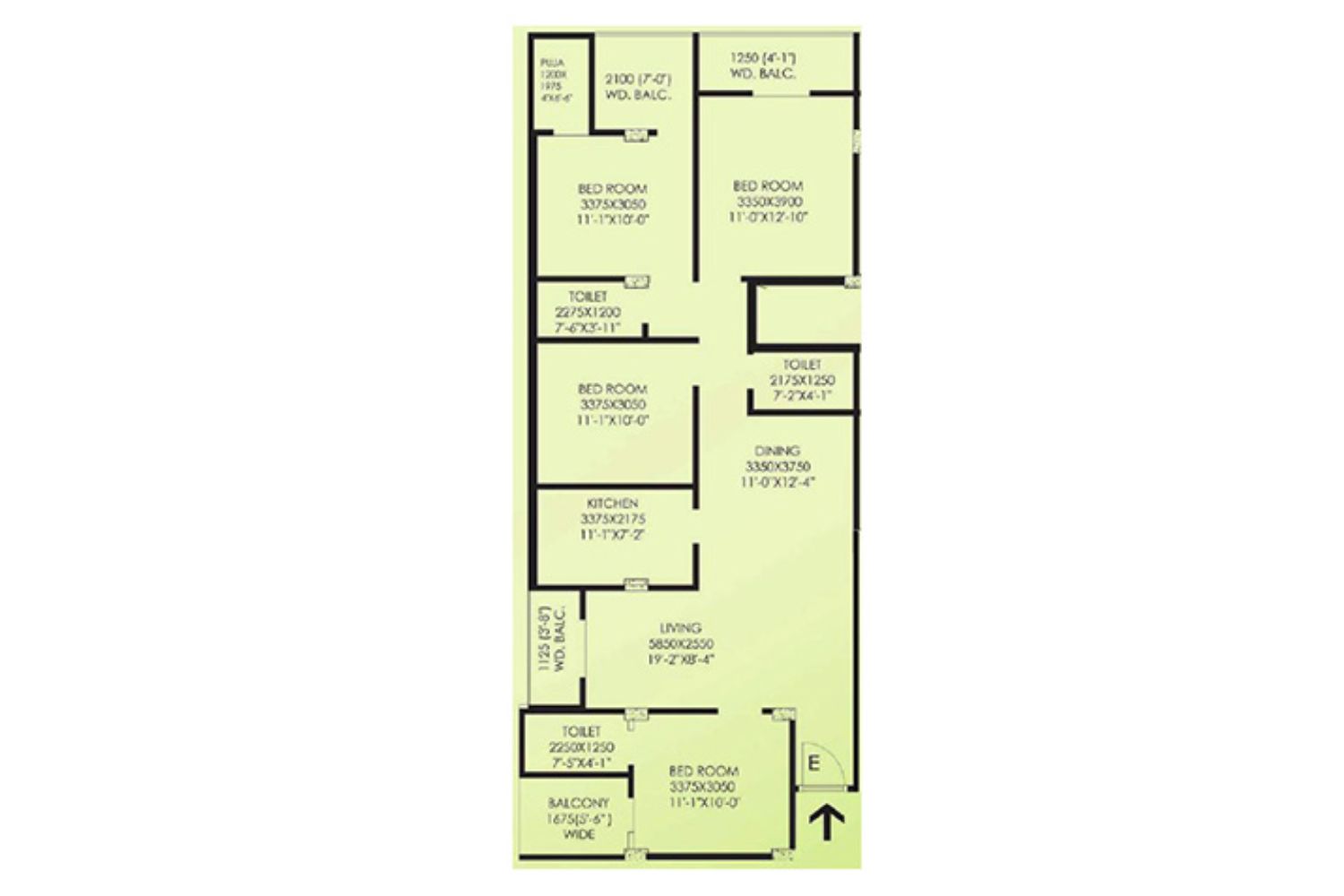 - Private balconies and large windows for ventilation and daylight.