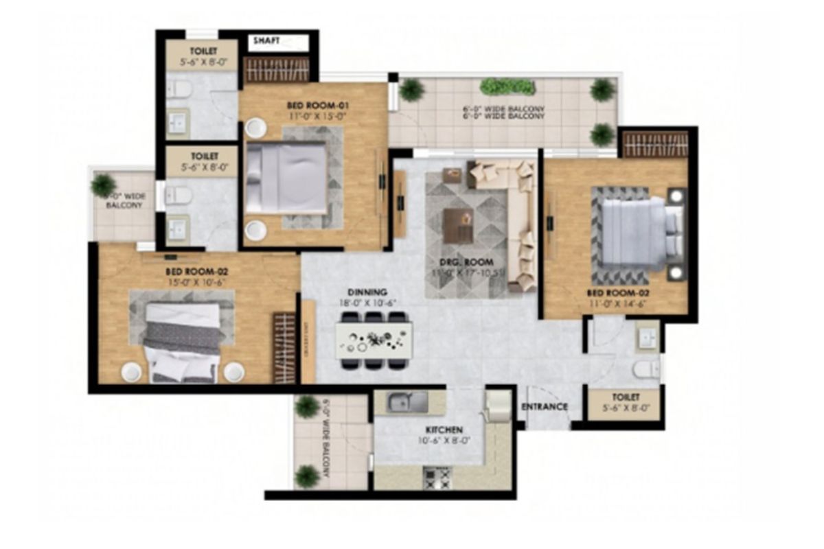 The 3 BHK flats in Zirakpur at The Vibe are tailored for those who value both space and smart planning. Each unit is designed to offer room for everything, from family gatherings to peaceful moments.